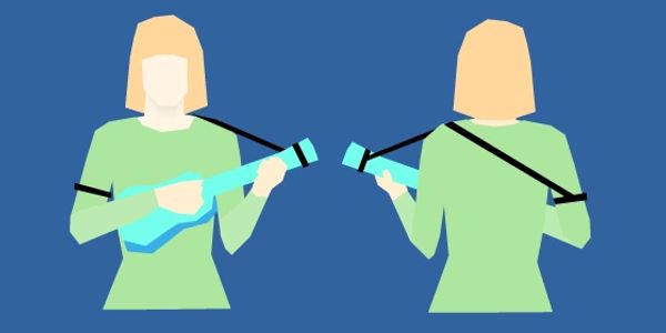 We're taking about the ukulele's waist here, not yours...This method is a good option when you need more help holding the uke up. It can be worn like a guitar strap, or like a lanyard. Order one size larger for this arrangement, and go without the logo tag.