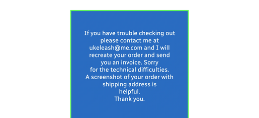 If you have problems with check-out, please email me @ ukeleash@me.com